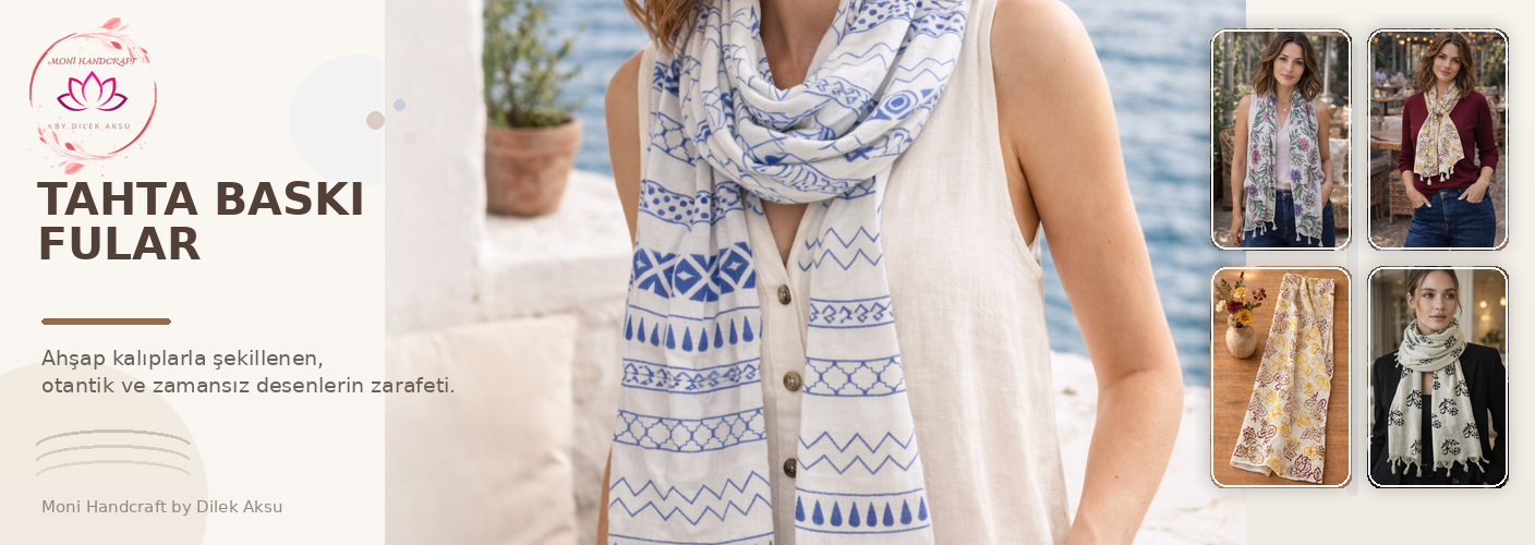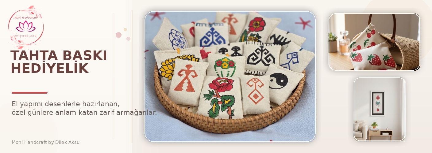 Doğal malzemeler, kültürel motifler ve kaliteli işçilikle hazırlanan ürünler; hem günlük kullanım hem de özel günler için estetik ve anlamlı seçenekler oluşturur. MONİHANDCRAFT koleksiyonları, geleneksel değerleri modern tasarımlarla buluştururken evinize, yaşam alanlarınıza ve sevdiklerinize sıcak, özgün ve kalıcı dokunuşlar kazandırır.